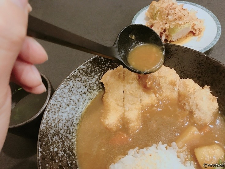 別忘了豬排要淋上咖哩 , 這樣吃起來才過癮