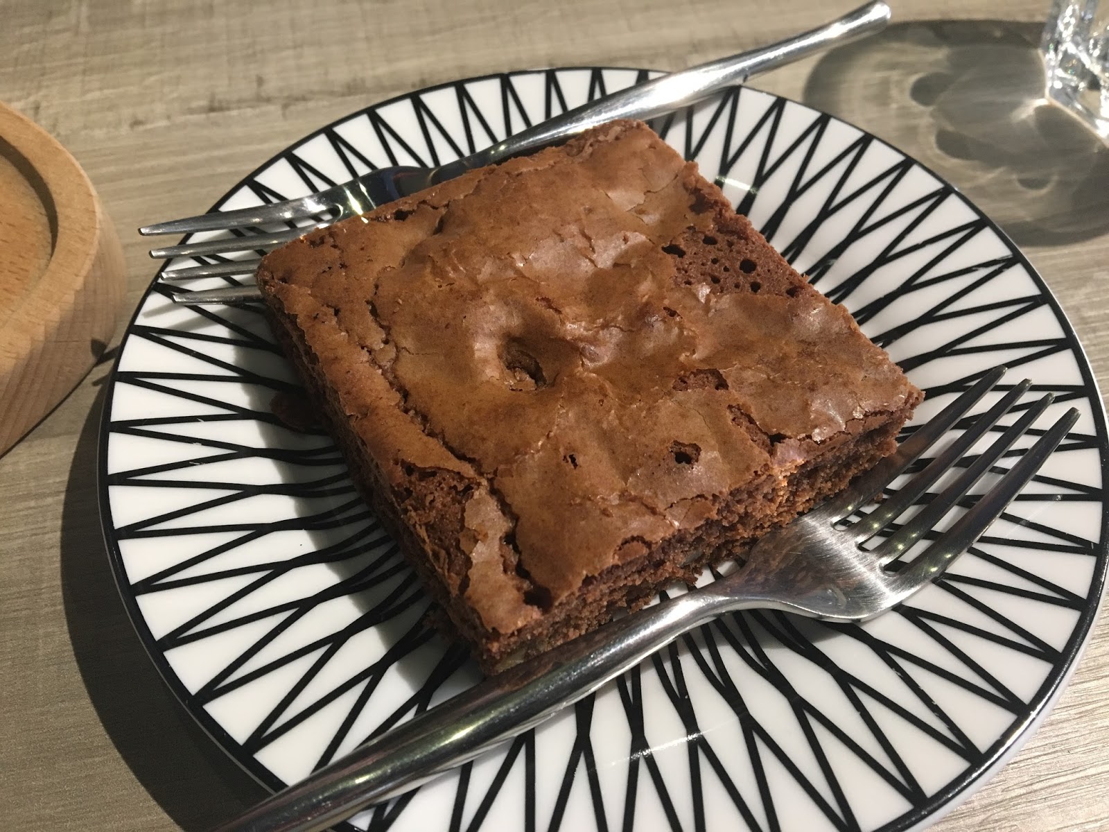 另外還點了巧克力布朗尼,我個人也很愛,不但口感扎實,還吃得到核桃,整體吃起來不會太甜,布朗尼很容易會有吃起來很膩的感覺,但慢生活的不會有這問題,配上熱拿鐵,非常適合當下午茶。