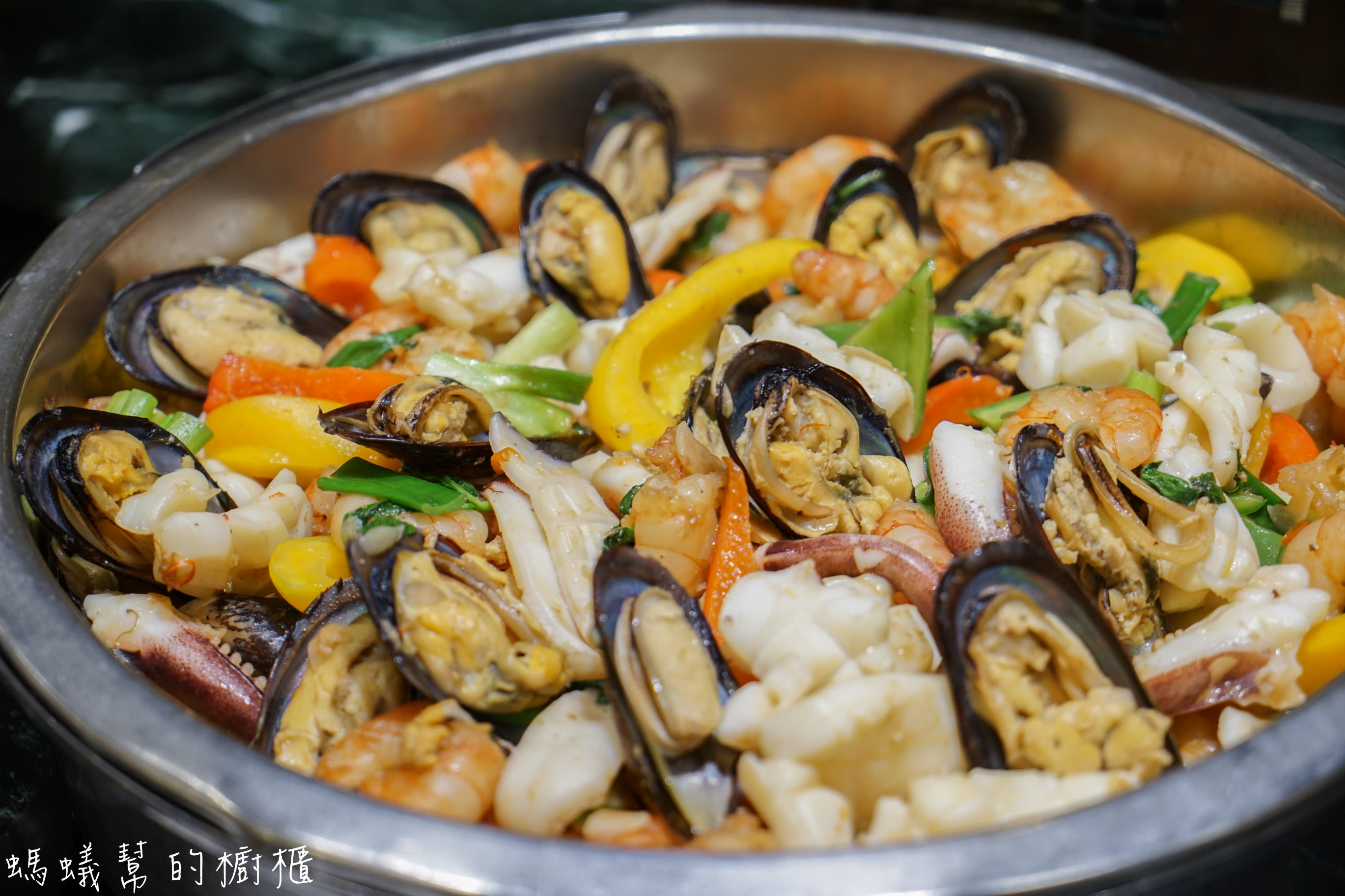 綜合炒海鮮結合了幾種不同的海鮮食材,淡菜、花枝、蝦仁搭配甜椒增加色澤,一道菜就能吃到好幾種海鮮風味。