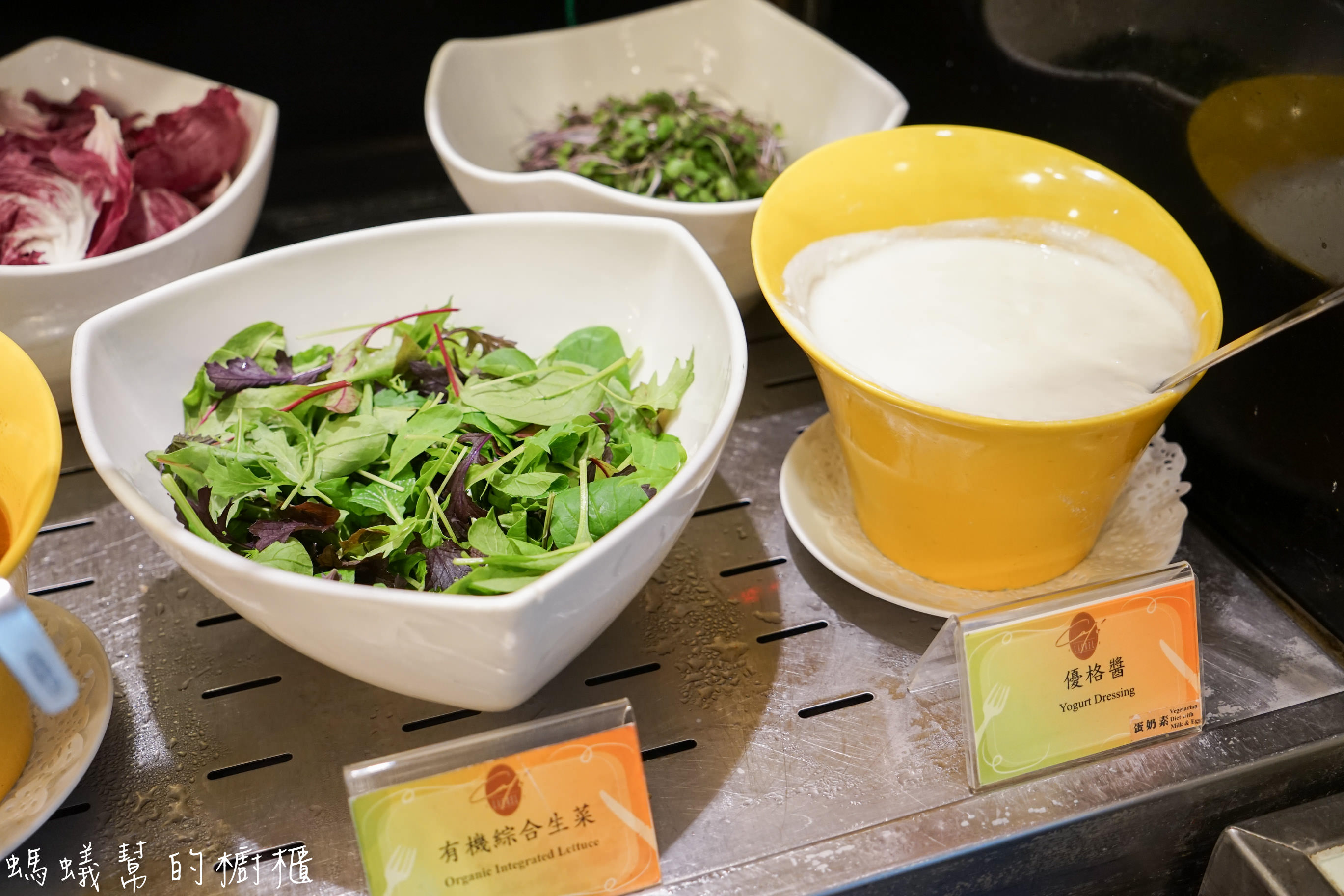 爽口開胃的沙拉區,精選新鮮生菜,搭配自家廚師製的優格醬、千島醬一起增加口感潤滑度,特別選用有機綜合生菜,讓顧客吃得健康又安心。