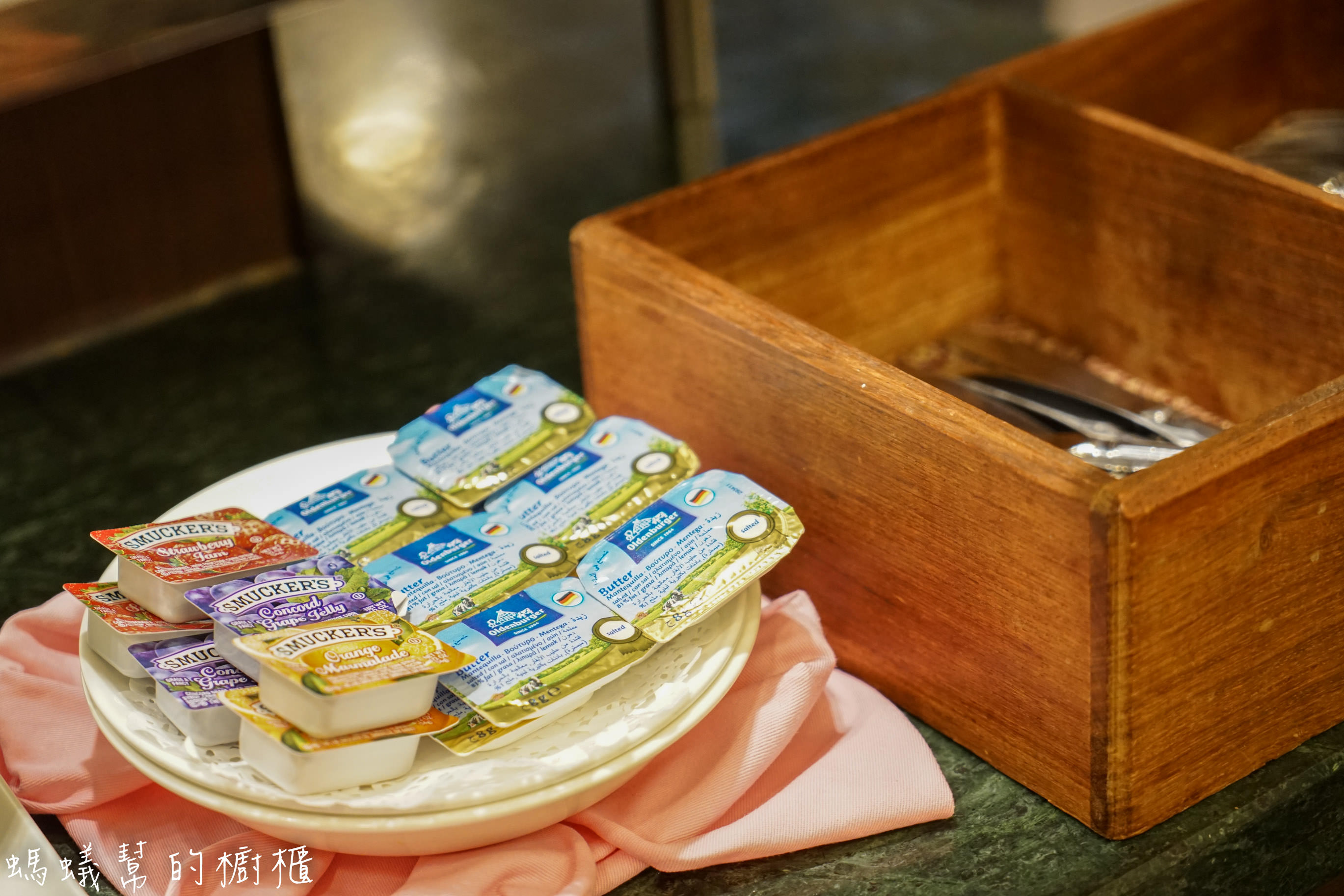 除了各式經典可口的甜點,歐式麵包系列也是自家手工製,可搭配一旁提供的奶油、果醬。