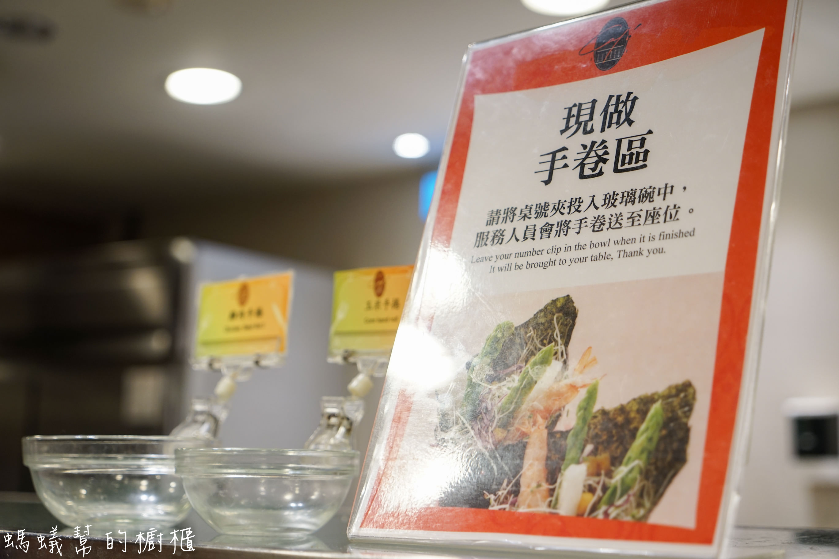 喜歡吃現包且擁有酥脆海苔口感的手捲,可將座位上的夾子至放在碗裡,服務人員就會送上現做的特色手卷。