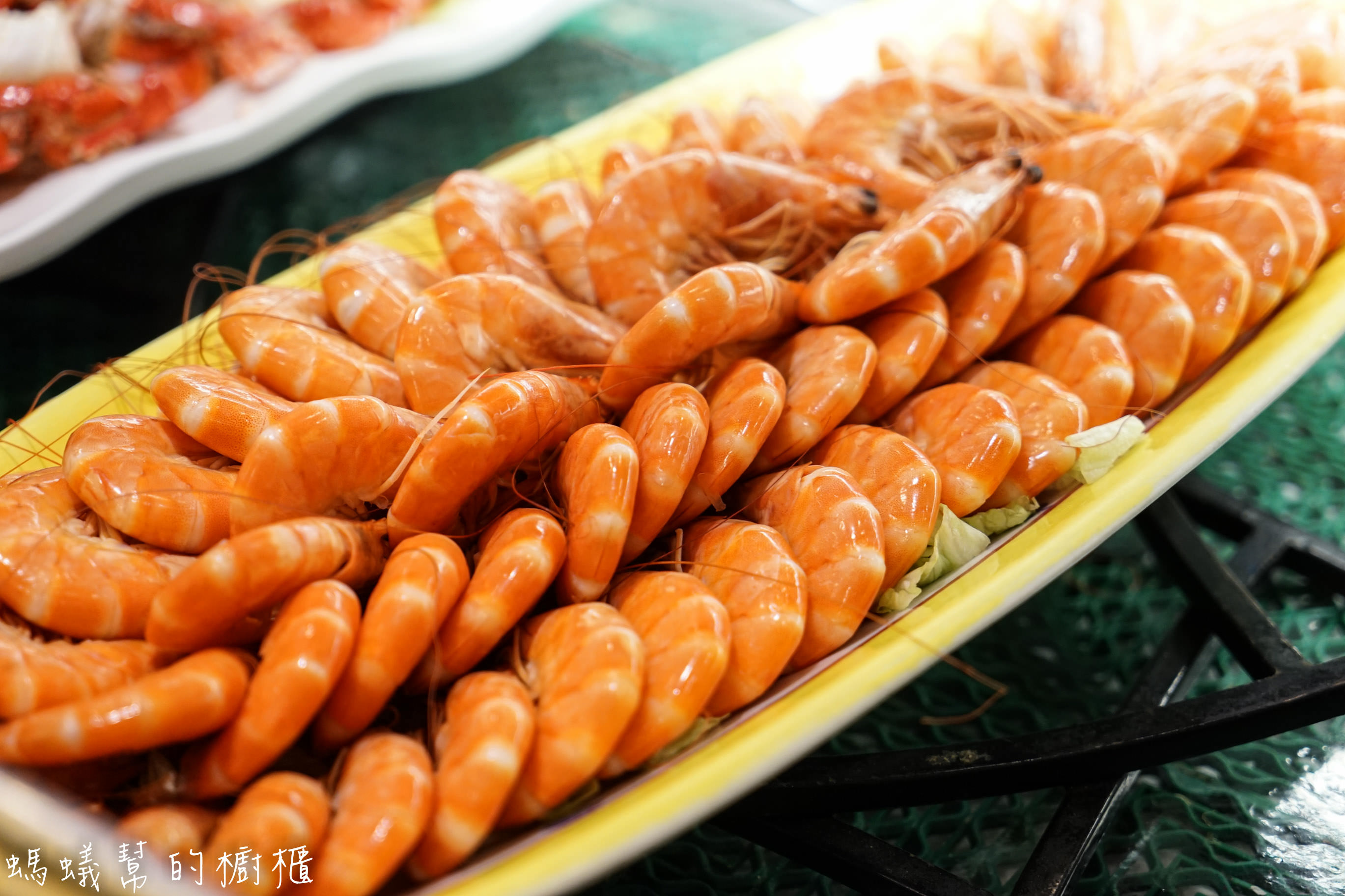 新鮮鮮甜的白蝦只要剝殼後不沾醬單吃就非常鮮甜,也是非常多人喜歡夾取的海鮮餐點。