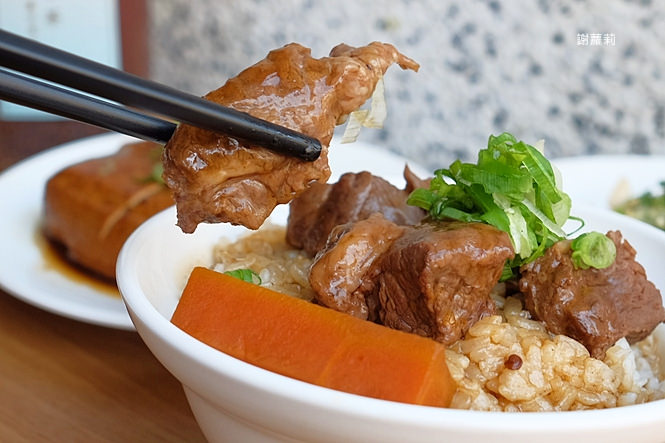 它的呈現方式跟燴飯還蠻相似的,有醬汁帶來的鹹香,還有花長時間熬煮的牛肋條,一塊一塊就這樣擺放在白飯上,偷偷告訴大家,除了牛肉是特別挑選之外,連使用的白飯還是高成本的台東關山米,每個小細節都絲毫不馬虎,為得就是讓客人吃一碗好吃又讓人備感用心的牛腩飯。