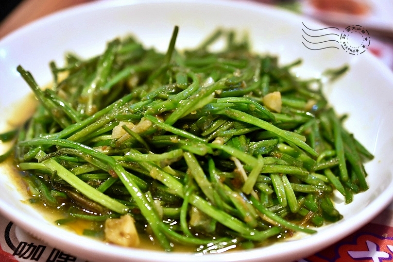 ↓水蓮菜是眾所周知的難處理,炒起來火侯要適當。這盤用看的就知道,火侯不夠,稍潤了些,嚼起來不夠爽脆。蒜炒的滋味不錯,也有叻沙。