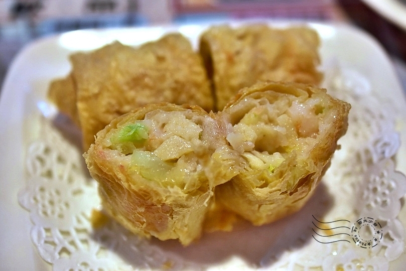 ↓鮮蝦腐皮卷。腐皮薄、炸得酥脆。