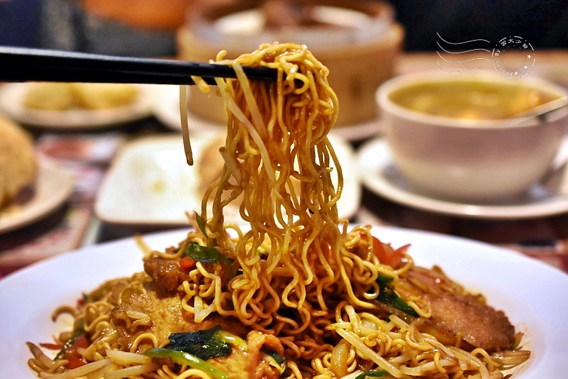麵端上來是香味四溢,麵體也是方便麵,炒得非常漂亮。然而嚐一口,咦?是XO醬,但不是港味的。通常干炒用大量的韭黃和洋蔥,在這道裡少許,改加了青菜與紅椒。鹹淡和滋味是適當的,但感覺比較像台式炒麵。