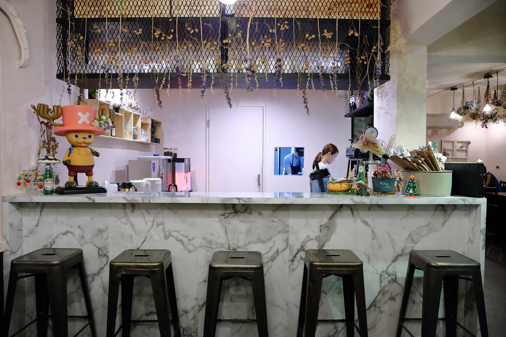 頭頂、四周都被垂吊的乾燥花圍繞,在花叢裡用餐,喜歡IG拍照的女孩兒怎麼能錯過