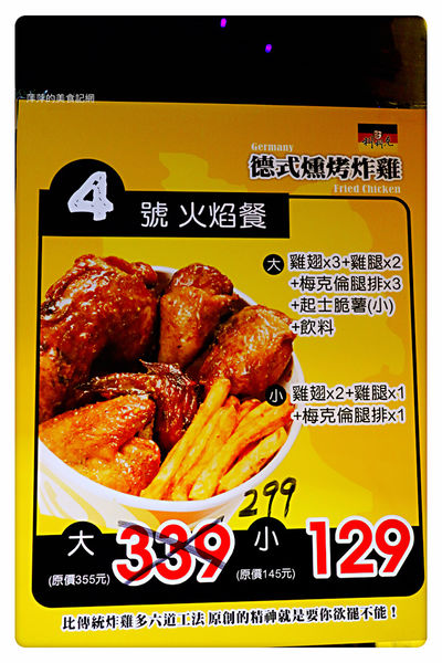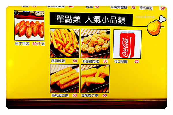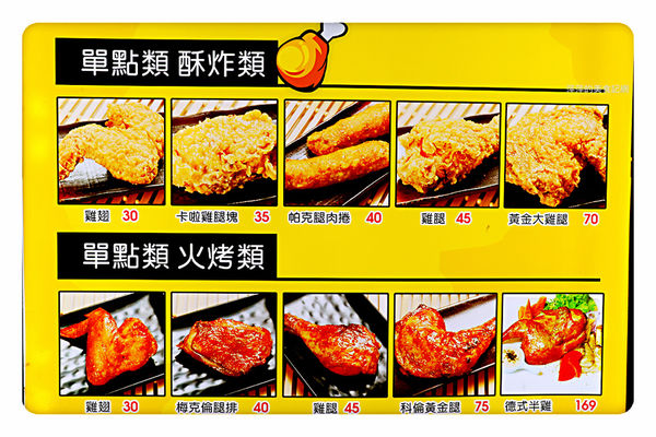雞翅、卡啦腿塊、烤雞翅、烤腿排,燻烤和炸的二種都吃的到