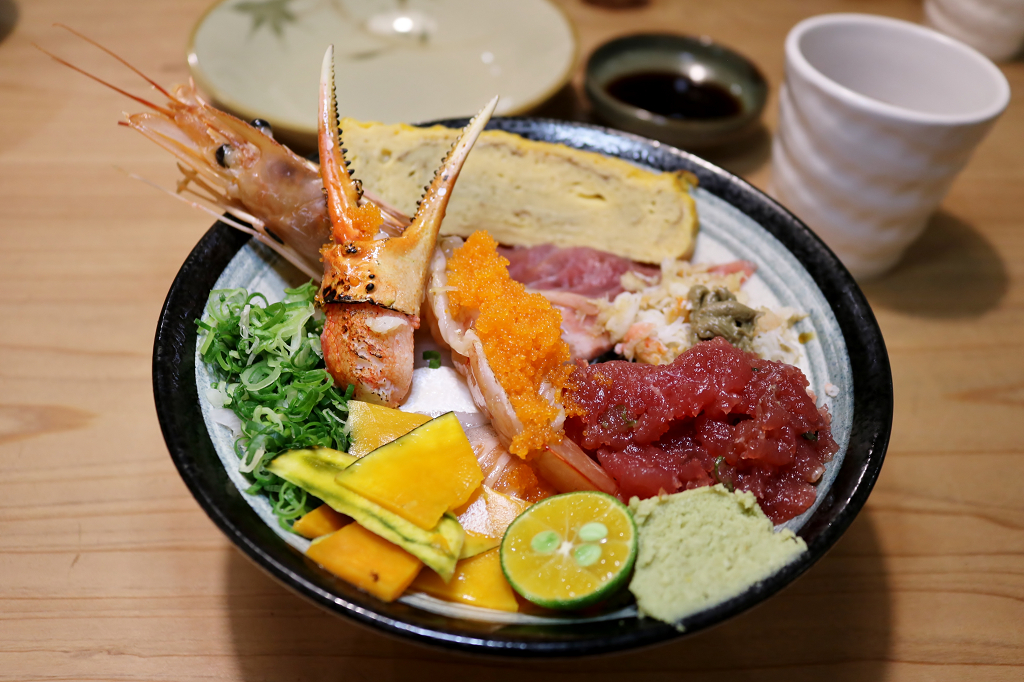 松葉蟹大蝦生魚丼 $480