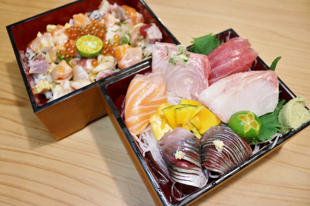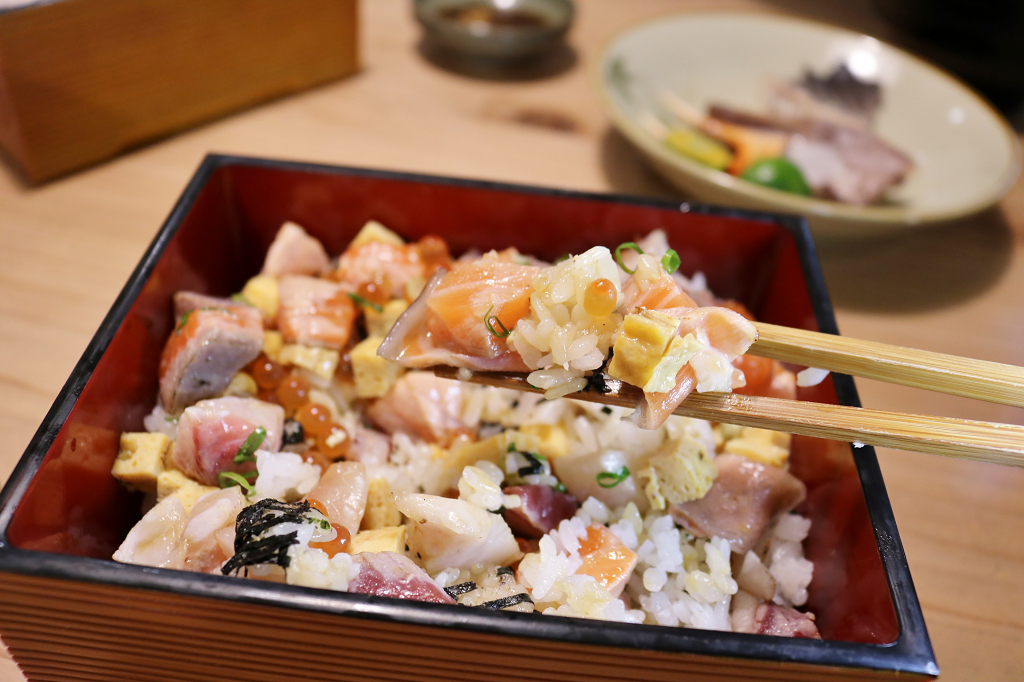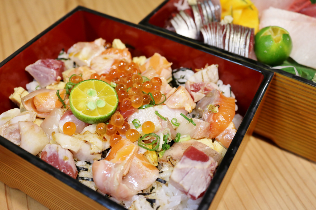 我本來就很愛吃散壽司,特別喜歡魚肉跟醋飯能夠同時一口塞進嘴裡的滋味,但就會有點可惜無法吃到完整生魚片的口感,江南店特製的雙層丼飯完全解決我的小煩惱,一層是生魚片,另一層是散壽司丼,雙層滿足,一次就能吃到兩種我的愛,超棒!