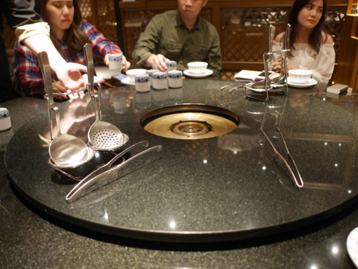 桌上的餐具與茶杯都已經備好, 而且桌面還是可以旋轉的