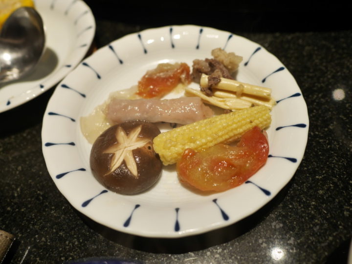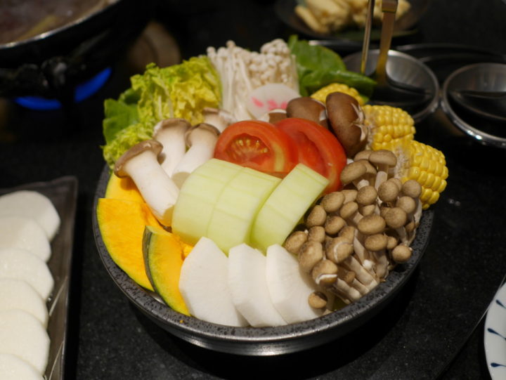 栗子南瓜, 山藥, 娃娃菜, 番茄, 玉米, 鮮香菇, 金針菇, 鴻喜菇, 杏鮑菇與大黃瓜等