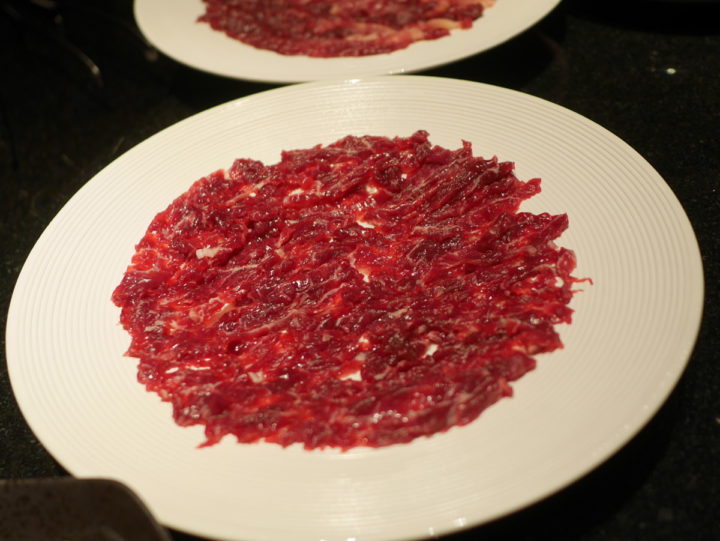 相較於鮮切牛肉吃起來會比較軟嫩與細緻, 甚至帶了點脆度與Q勁
