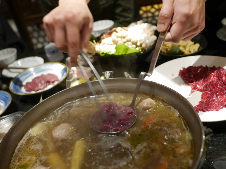 建議是將肉放在有洞的湯勺去邊翻邊涮
