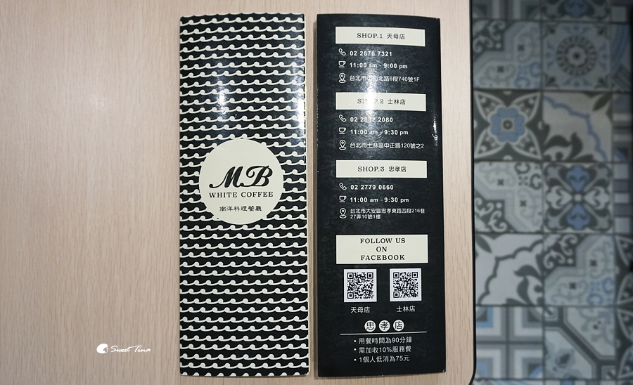 MB white coffee目前總共有三間分店,天母店、士林店、忠孝店,風格上也略有差異,但餐點一樣美味可口,推薦給大家囉!