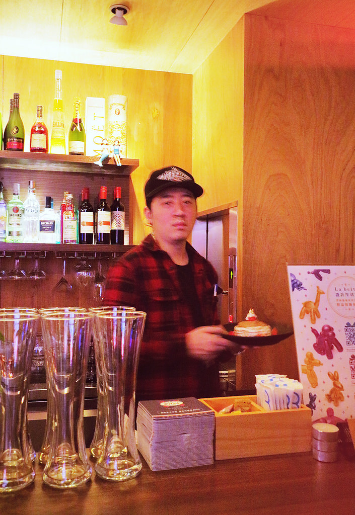 拍到帥氣店長正要把我們的甜點端上桌哩!(期待~~\(^∀^)メ(^∀^)ノ)