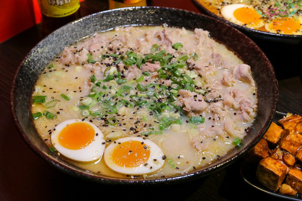 拉麵Q香有彈性,份量足…我和緹小妞共食才吃得完,每碗附上一顆高水準溏心蛋,半熟亮橘的蛋黃,不論是外觀和口感皆美味無比,配拉麵更是我最愛的吃法。