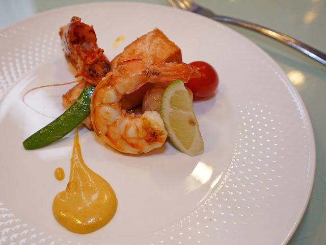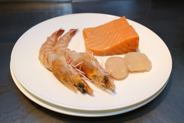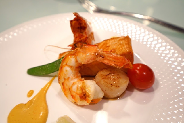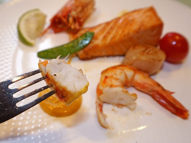 這盤由澳洲紅刺蝦、挪威鮭魚、北海道生食等級干貝組成的海鮮組曲,讓人吃完回味不已。