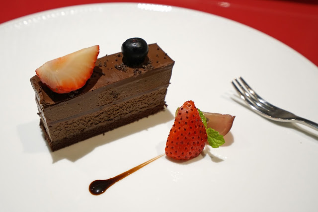 濃情巧克力慕斯的巧克力味道濃郁又不會太甜,柔軟的慕斯在嘴裡融化開來,配上草莓吃起來很對味!