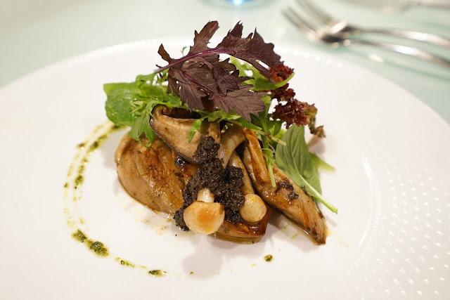 現煎的松露百菇沙拉,淋上香氣飽滿的松露醬,松露的香氣提升蕈菇的滋味層次,讓柔嫩的蕈菇吃起來很有奢華感。
