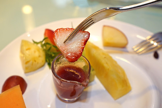 鮮果沙拉附的是莓果醬,酸甜濃郁的滋味令人難忘。