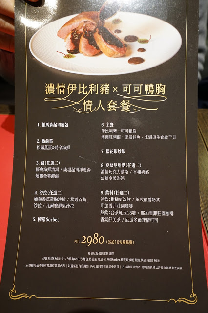 我們被引導到二樓的座位區,桌上放著戀人席的卡片,高級又夢幻的氣氛,很適合慶祝情人節或結婚紀念日。