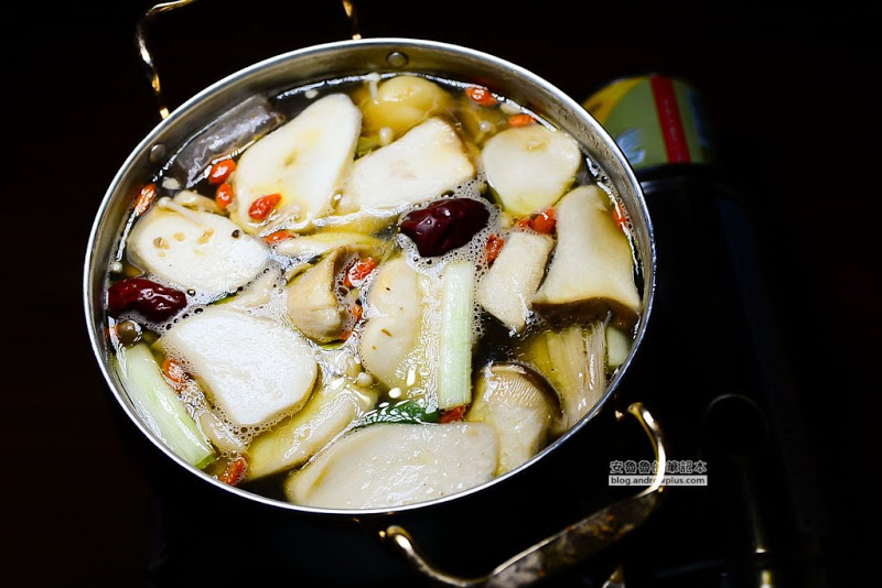 湯裡除了雞肉、菇類、蔥段、枸杞、紅棗,還有茶包,茶包在湯品煮個幾分鐘,茶香就能充分的進入湯頭,煮一下就可以把茶包取出,開始喝茶雞湯。杏鮑菇口感軟彈,雞湯喝起來有淡淡的紅棗枸杞中藥香,由於有茶葉加持,感覺湯頭喝起來多了一股清香味道
