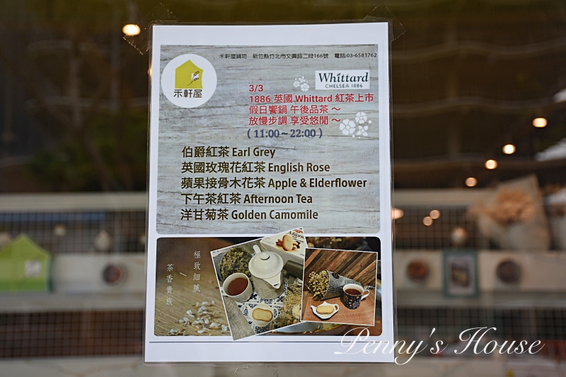 另外,假日下午還有推出下午茶唷!!!茶品是採用英國知名品牌『Whittard CHELSEA 1886』,假日想要好好的聊天,不用轉移陣地去咖啡廳,直接在禾軒屋慢慢坐慢慢聊!