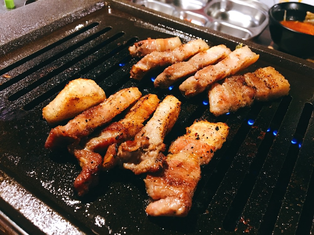 據說是女生必點的一道肉品,韓式柚子果醬與三層肉的結合。