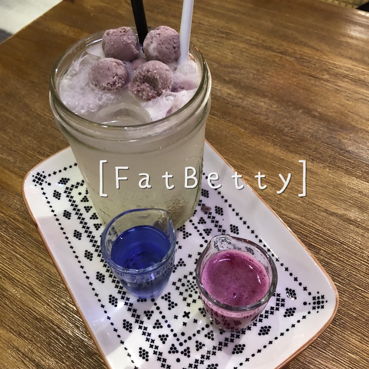 構成是氣泡水,💙杯子是碟豆花糖漿💜杯子是火龍果汁