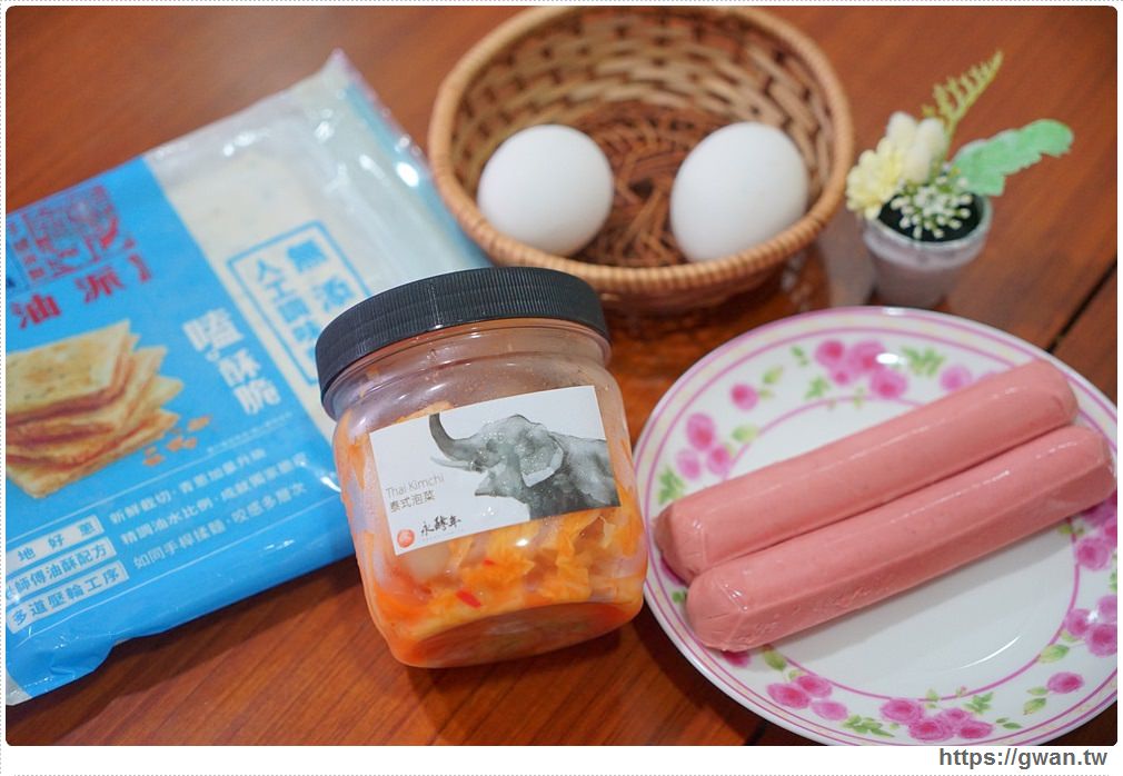 蔥油派、蛋、大熱狗、永酵年泰式泡菜