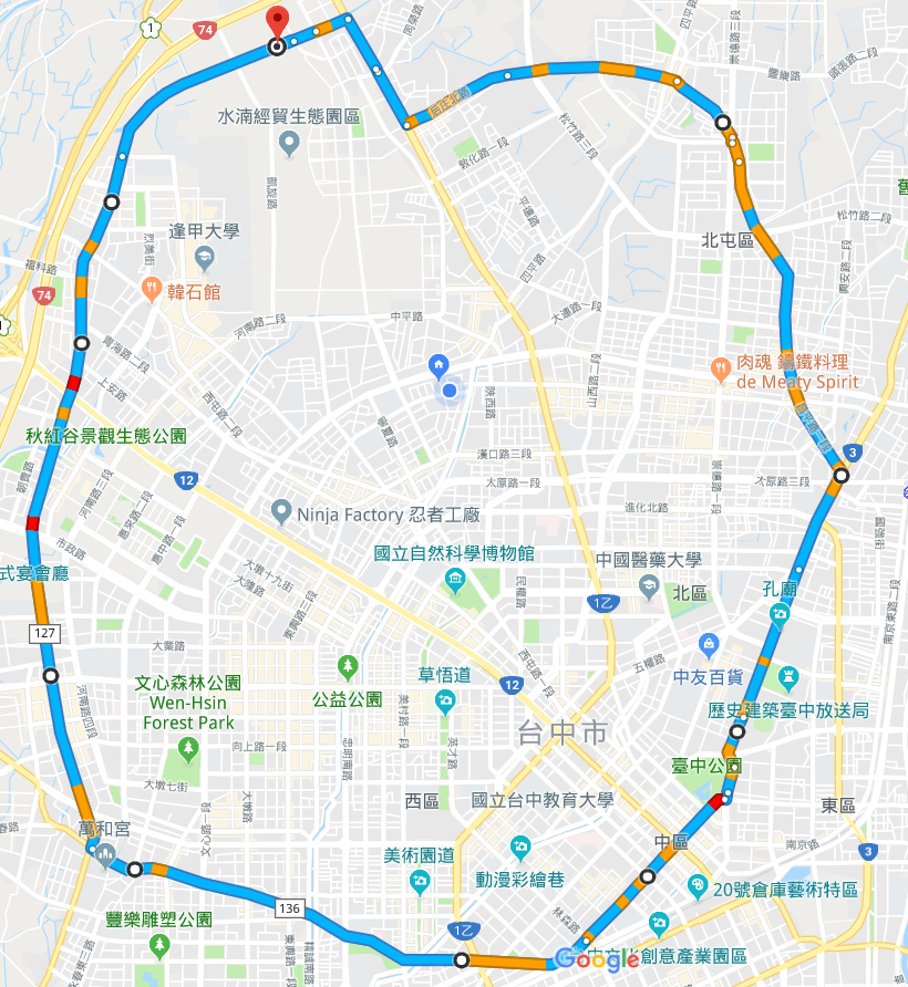 黎明路、南屯路、自由路、雙十路、北屯路、昌平路、后庄路、后庄北路、中清路