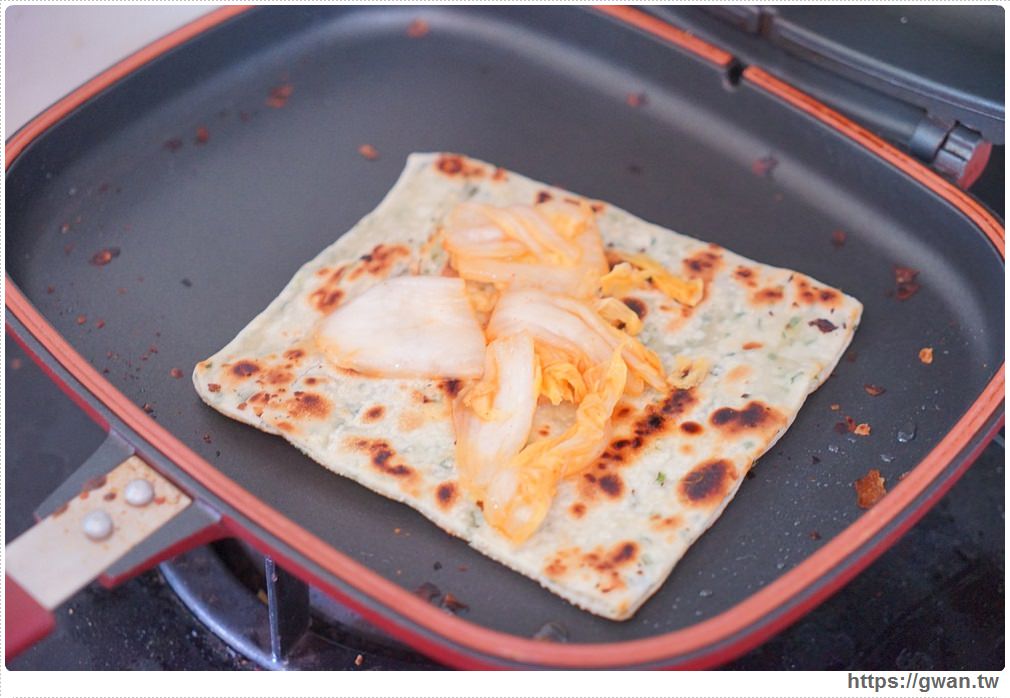 最後再煎蔥油派 蛋狗要搭這種方形的蔥油派才好吃,超市就可以買到唷!!