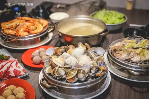 小層的海鮮大概適合 4-5位一起食用,你看那打開來滿滿的蛤蜊,他們蛤蜊選的都好大顆,主要以野生蛤蜊為主,搭配上幾顆奶油貝、牛奶貝,想想這些蛤蜊的湯汁全都流入最鍋底的湯頭中,這是多麼濃郁的海鮮味~~(腳痛~~)