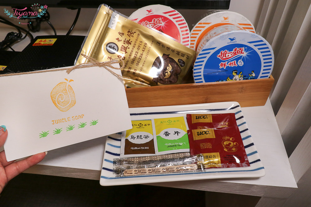 老闆的細心和巧思還不僅在房間的裝潢設計看得出,連備品擺放、準備的宵夜和歡迎小卡都讓人有倍受禮遇的感受。