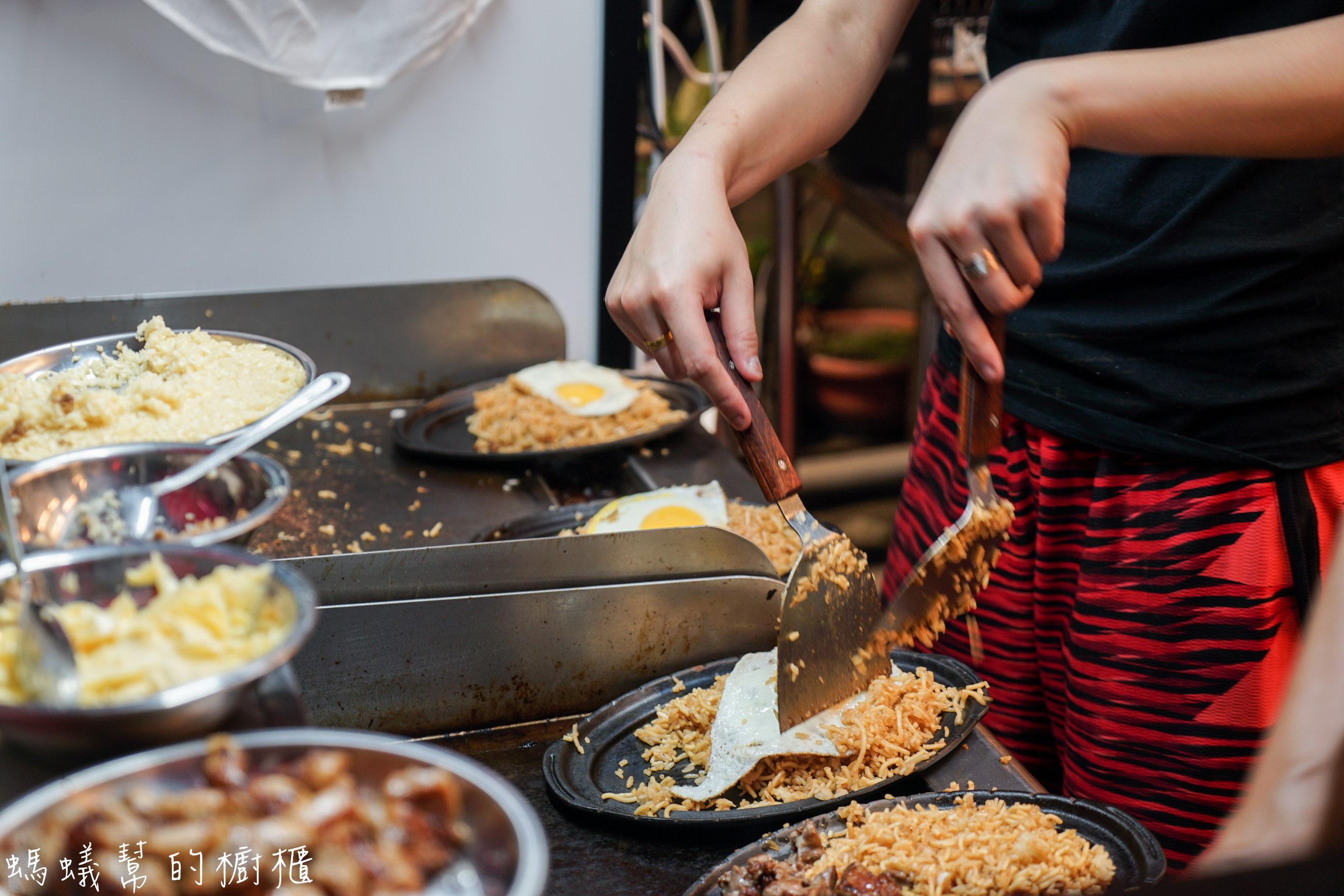 炒飯加炒麵的口感是我第一次吃到這樣的組合,因為有加入蒜頭一起炒香,炒飯粒粒分明搭上炒麵彈口,兩種不一樣的口感會讓人一口接一口,另一種吃法則是沾上半熟蛋黃液則是增加溫潤感,怎麼吃都好吃。