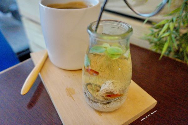 還有與杯子並放的迷你小魚缸造景,
