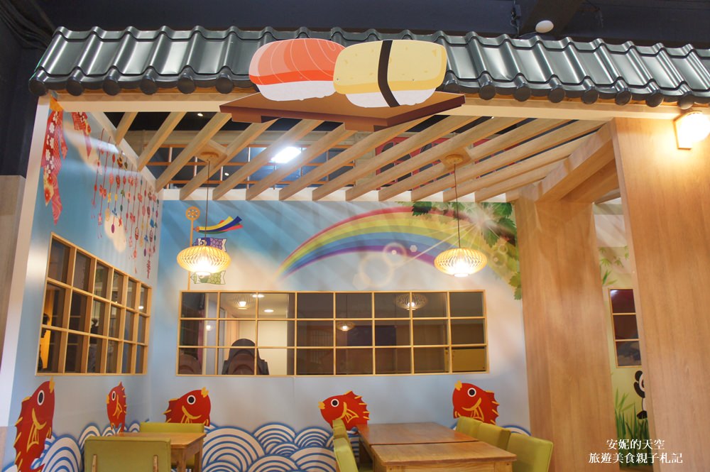 另一座包廂上面有好可愛的壽司圖案,包廂裡頭充滿童趣的海洋風情,感覺鮮美的魚兒就要化身為握壽司了,超級可愛。