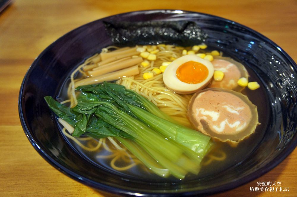 雖然是醬油拉麵,不過湯頭不會死鹹,麵的配菜很簡單,蔬菜、糖心蛋跟筍乾,以及我說不出名稱的配料,麵條很特別,放久了竟然也不會軟爛,還算好吃。