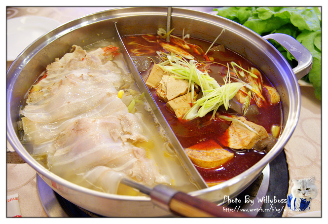 酸白菜鍋的湯頭不會太強酸(這樣說好像有腐蝕性XD),除了酸白菜還可以看到有玉米和蕃茄丁,所以喝的到水果的鮮甜相當順口,鍋底裡頭的豬肉片也不少,不過這種豬肉片通常就是陪襯的作用,切的超薄,吃起來也沒什麼感覺,沒特別問一下不確定可不可以續。