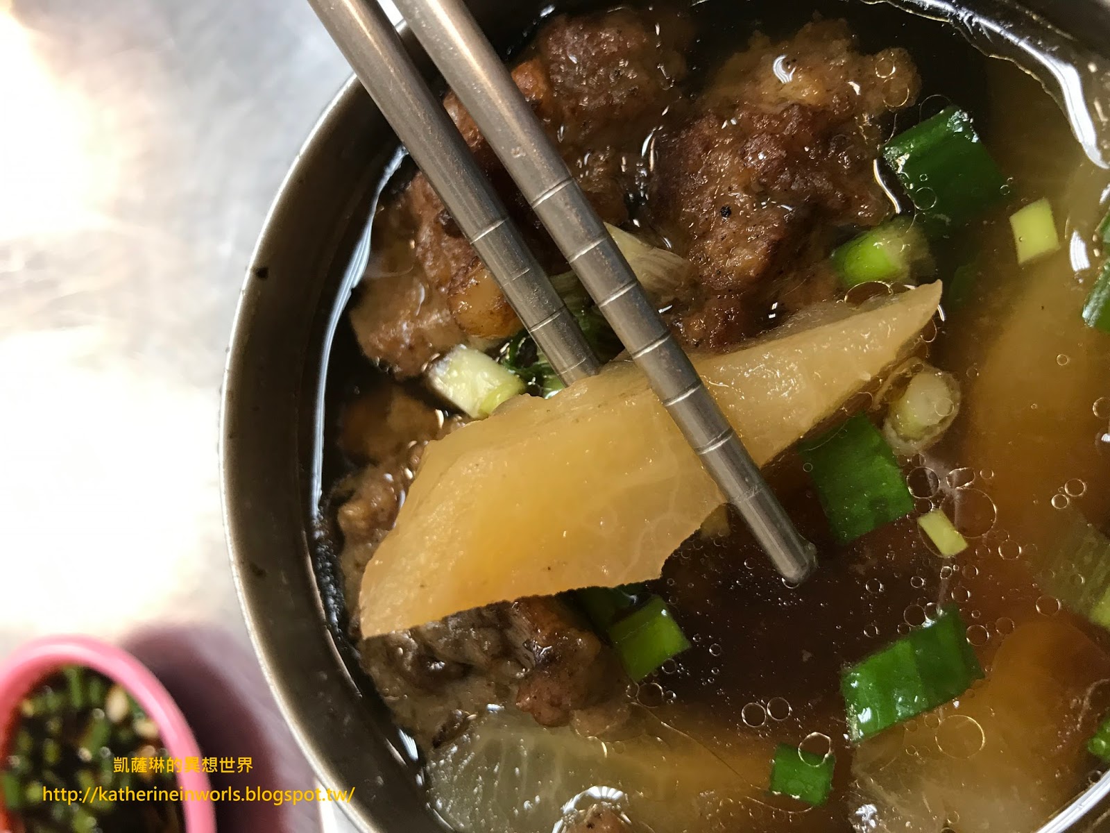 不論是苦瓜 / 蘿蔔 / 冬瓜 / 芋頭或是排骨酥,經由蒸籠蒸煮後,肉質吃起來嚼勁軟嫩易吞食,凱薩琳非常喜愛,店家也非常大方慷慨,一盅約5-6塊排骨酥,很過癮。