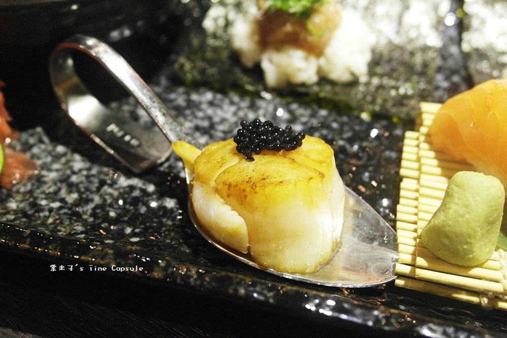 鮮美的干貝加上帶著黑得發亮的魚子醬,