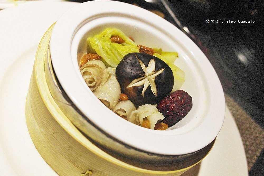 以熬製多時的雞湯底加入了五花肉卷、大白菜、香菇、枸杞、紅棗....,