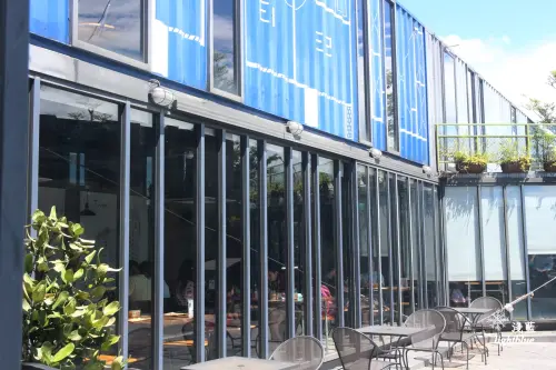 咖啡廳的另一側是較適合拍照的區域,整面的紅色貨櫃拍照起來很吸睛,