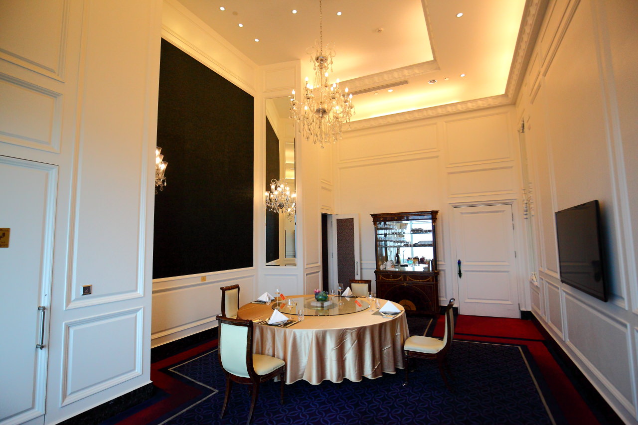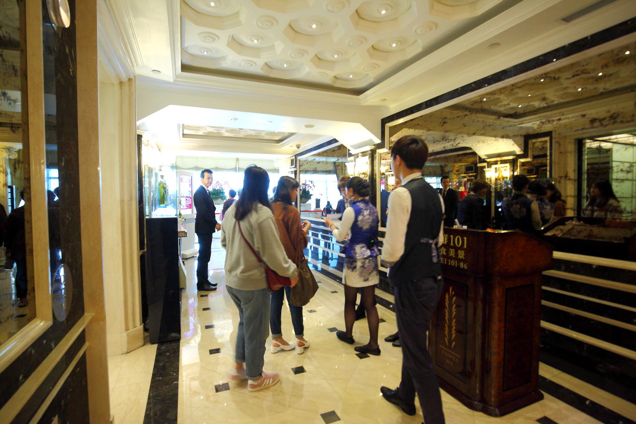 步出電梯一字排開的身著亮麗制服的服務人員依序將顧客引導至座位,尊榮親切的服務就從跨出電梯的那一刻開始~