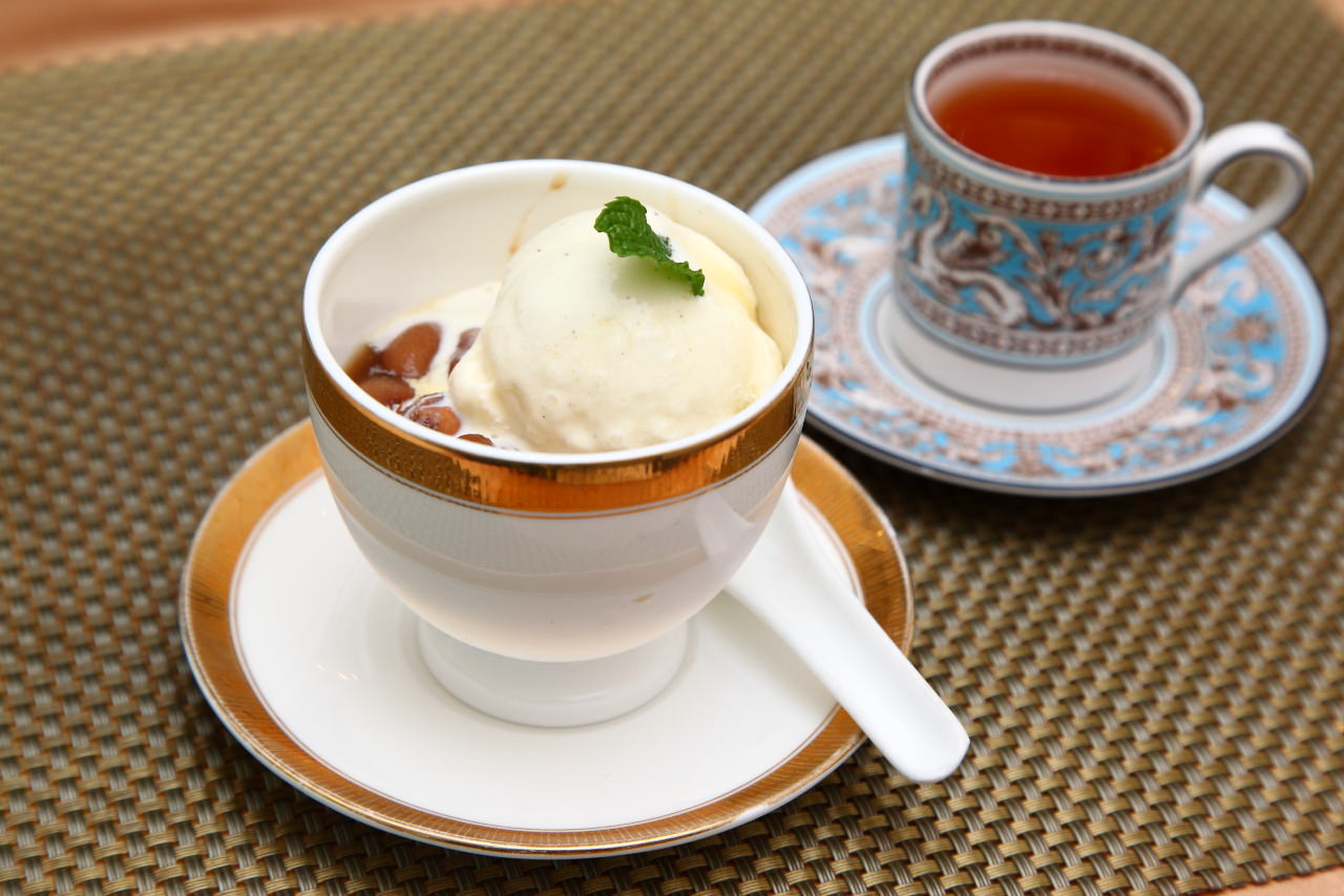 這花豆可是花費四個小時用日本黑糖給蜜出來的,在蜜的過程中加入八角,甜蜜的花豆入口綿密在口中化開,餘韻帶著微微的八角香氣,也就是這股香氣讓蜜花豆甜而不膩,再加上沁涼的冰淇淋的乳化作用,滑順香甜的冰涼口感,作為飯後甜點最為合適了!