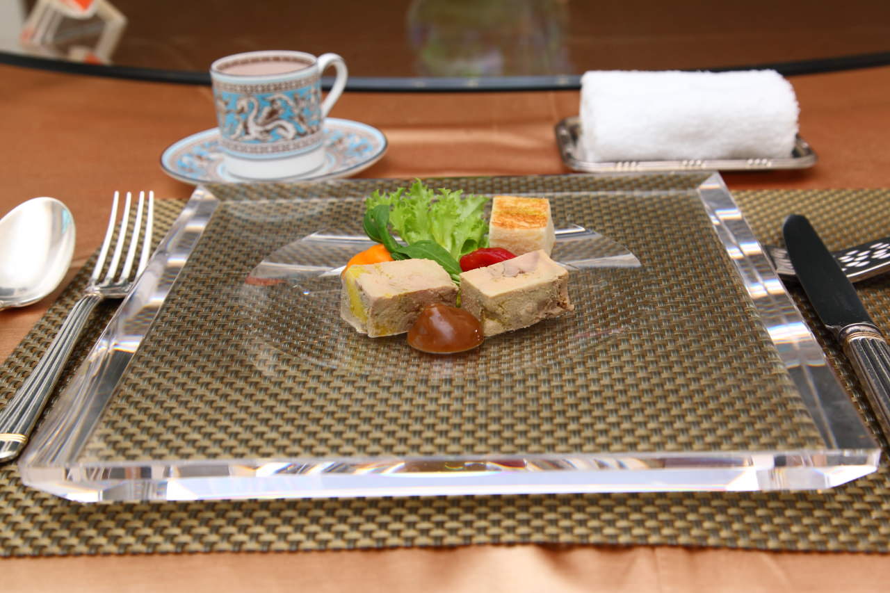 以水晶盤盛裝,在燈光的照耀下水晶盤將菜餚襯托的亮麗無比!