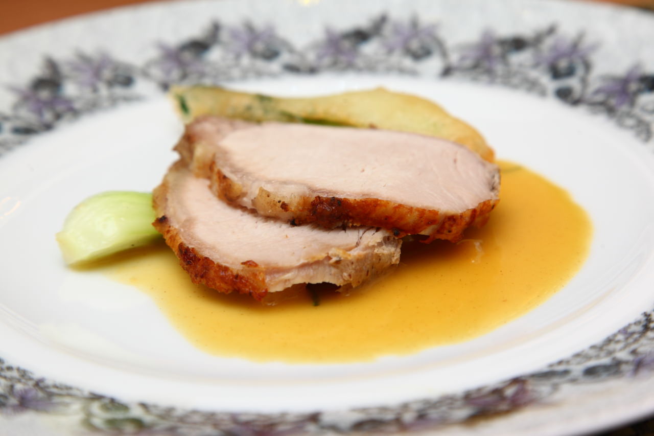 伊比利豬有著「勞斯萊斯級豬肉」與「神戶級豬肉」的美譽,嚴選生長於西班牙西南部自然放牧、吃野生香草、橄欖和橡木子生長而成的頂級伊比利豬,取其腰間肉部位先微煎再烘烤呈現9至10分熟,上桌時表面紋理分明且油光乍現卻不油膩,以刀叉切下後散發自然香草味
