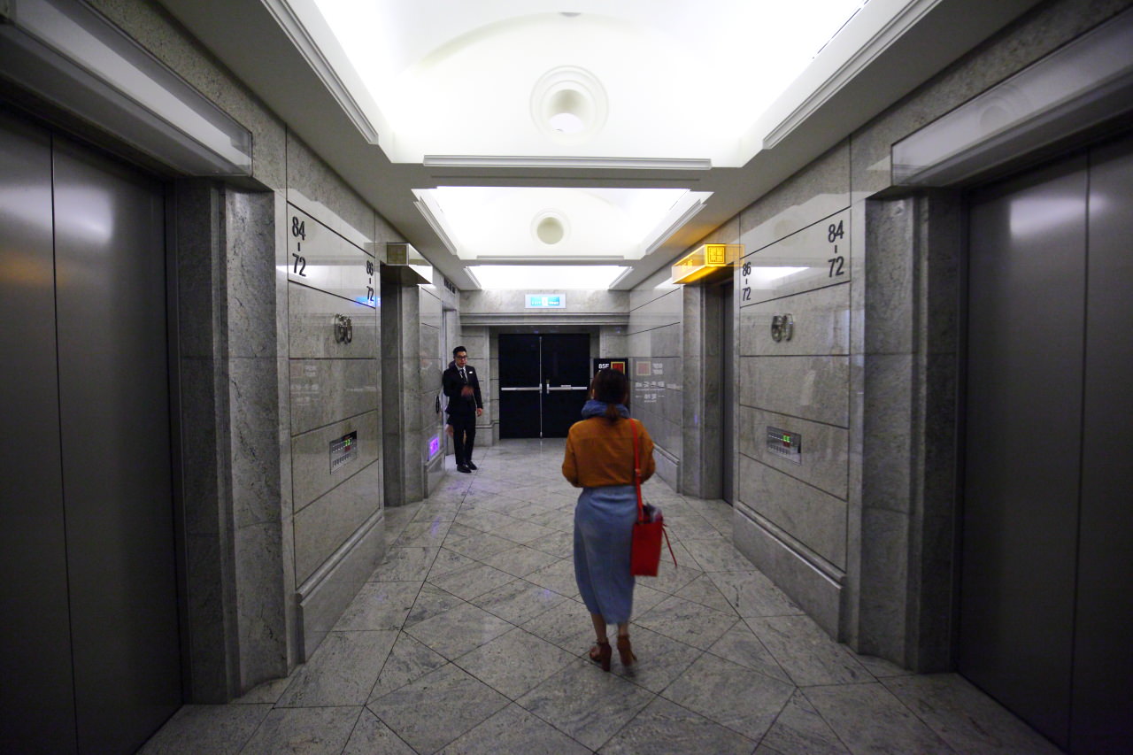 搭乘電梯要先坐到60樓再轉乘另外一台電梯才能到86樓